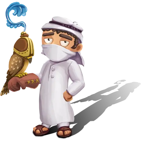 Hamd shows true strength and calm pride. He has a powerful presence and keeps his eyes on his target thus making everyone trust him. He is accompanied by his faithful falcon that brings protection and knowledge to the farm.